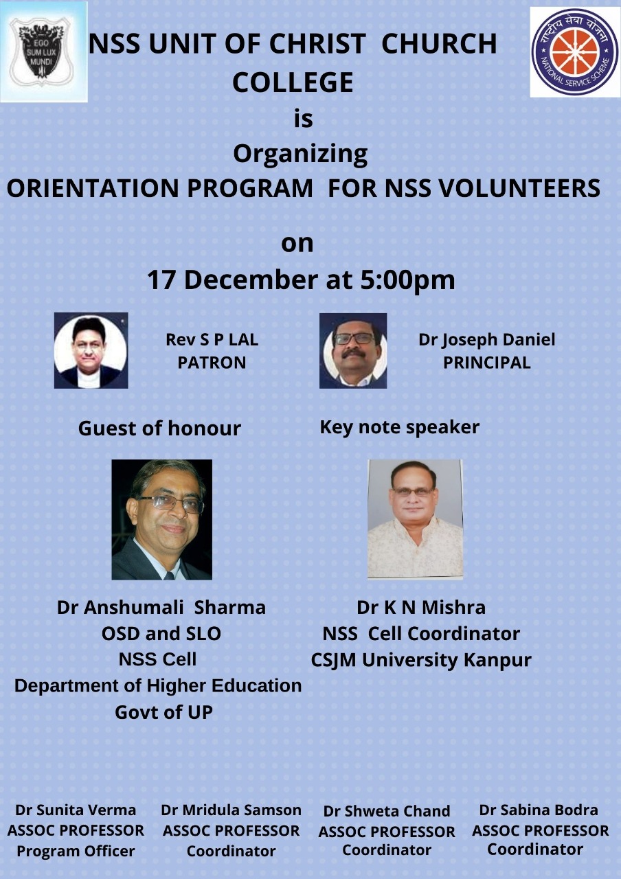 - Link for Online Orientation Program for NSS Volunteers. It is mandatory for all students who are interested in NSS